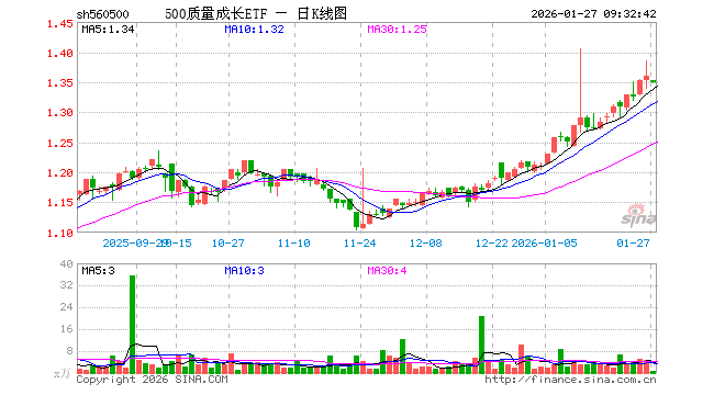 500质量成长ETF(560500)业绩比较基准为中证500质量成长指数收益率,管理人为鹏扬基金管理有限公司,基金经理为施红俊,成立(2021-08-04)以来回报为34.50%,近一个月回报为10.78%。